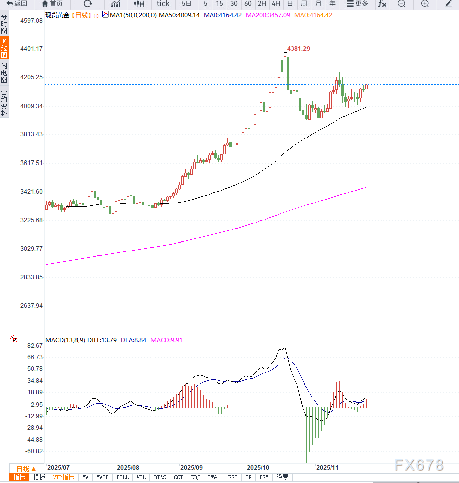 一旦站稳4200上方,下一目标将指向本月高点4245美元。