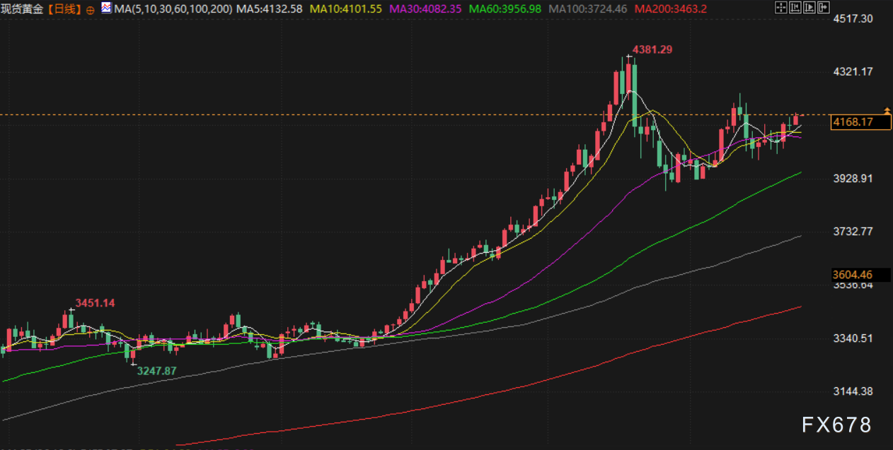 周四(北京时间11月27日)亚市早盘,现货黄金交投于4167.57美元/盎司附近,金价周三延续涨势,攀升至逾一周高位,受市场对美联储将在下月降息的预期提振;美原油交投于58.50美元/桶附近,油价周三从一个月低点小幅回升,投资者在感恩节假期前权衡供应过剩前景与俄乌和平谈判进展。