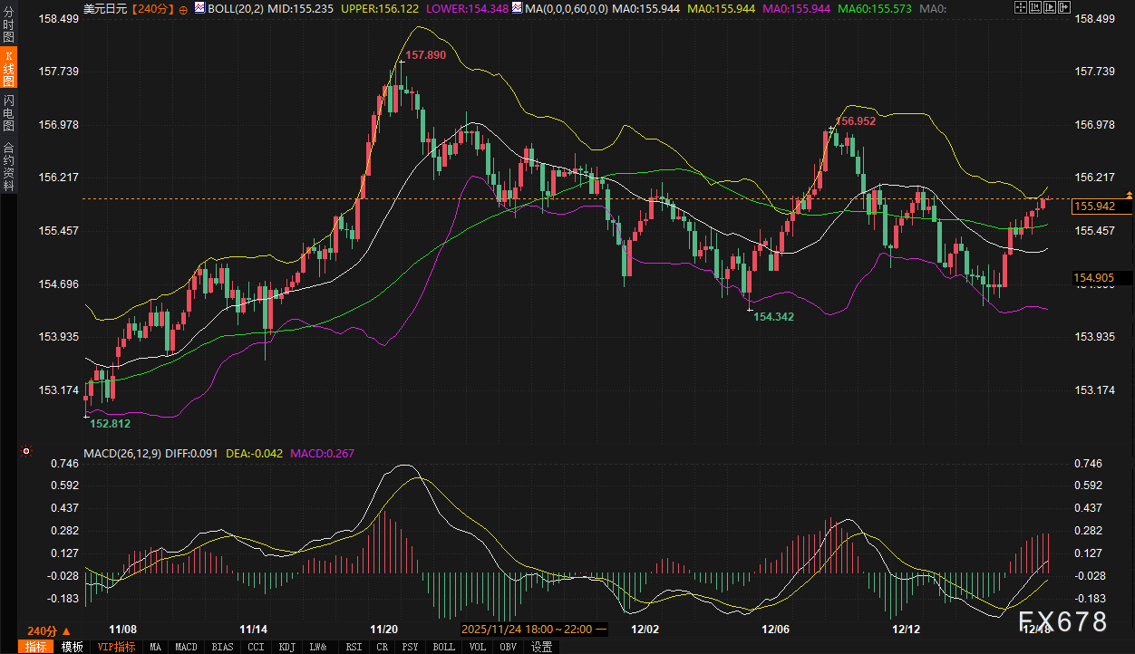 美元兑日元的走势目前处于一个微妙的平衡之中。一方面,即使日本央行明日加息,日美两国巨大的国债利差(以10年期为例,仍远超300个基点)依然是支撑美元兑日元的核心基本面因素。这使得汇率在回调时,下方买盘始终存在。另一方面,市场对日本当局可能进行的汇市干预保持高度警惕,限制了汇率的无序上行。